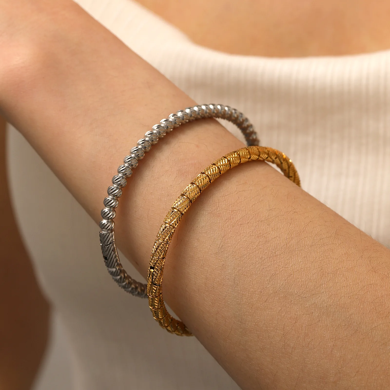 MW Classic Minimalist Stainless Steel Jewelry Wholesale 18K Gold Plated Waterproof Textured Round Bead Bangle Bracelet for Women